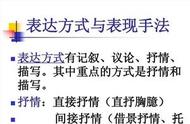 1.表现手法包括:托物言志、写景抒情、叙事抒情、直抒胸臆、对比、衬托、卒章显志、象征、衬托、想象、联想、照应、寓情于景、反衬、烘托、托物起兴、美景衬哀情、渲染、虚实结合、点面结合、动静结合、伏笔照应、托物言志、设置悬念、渲